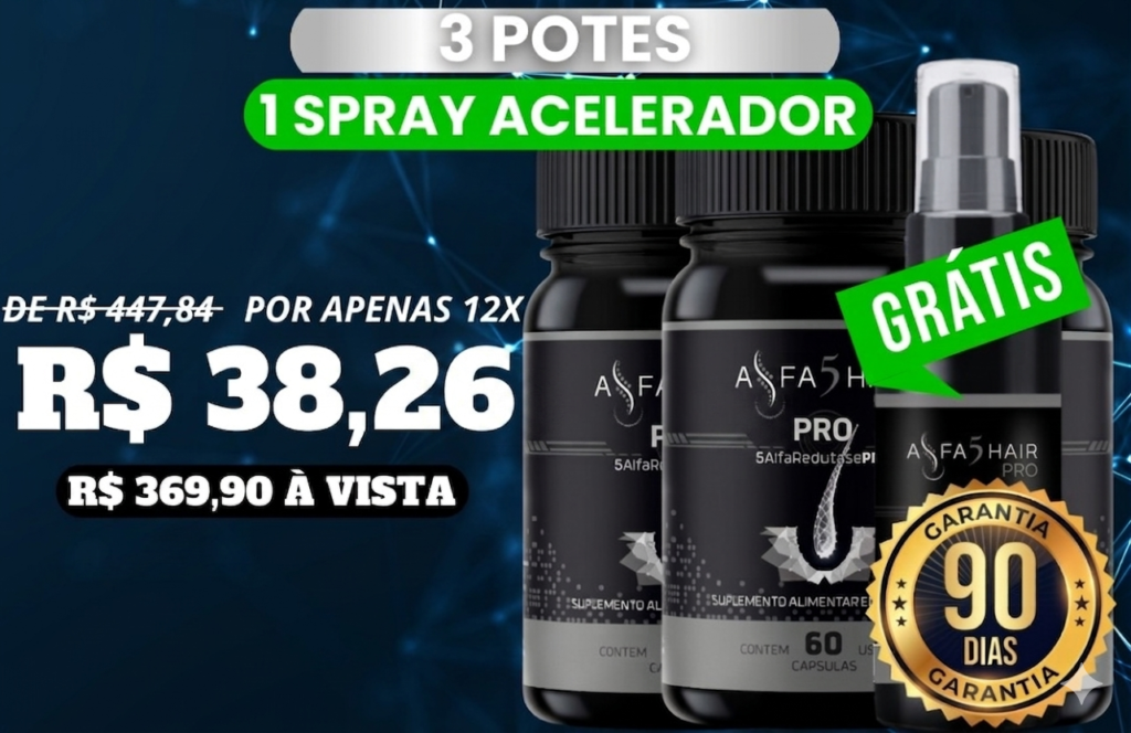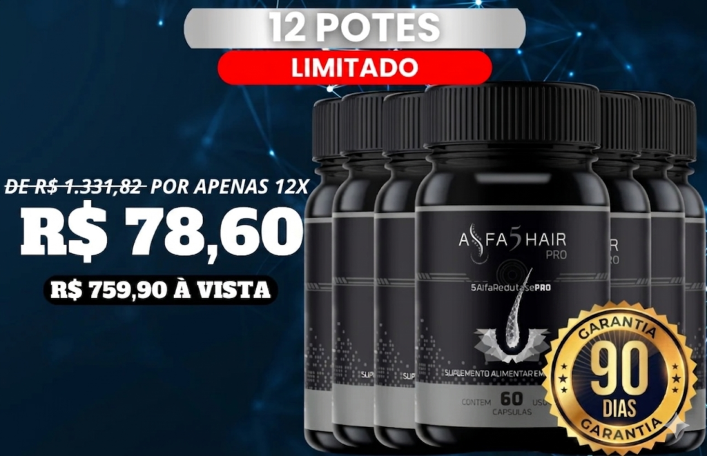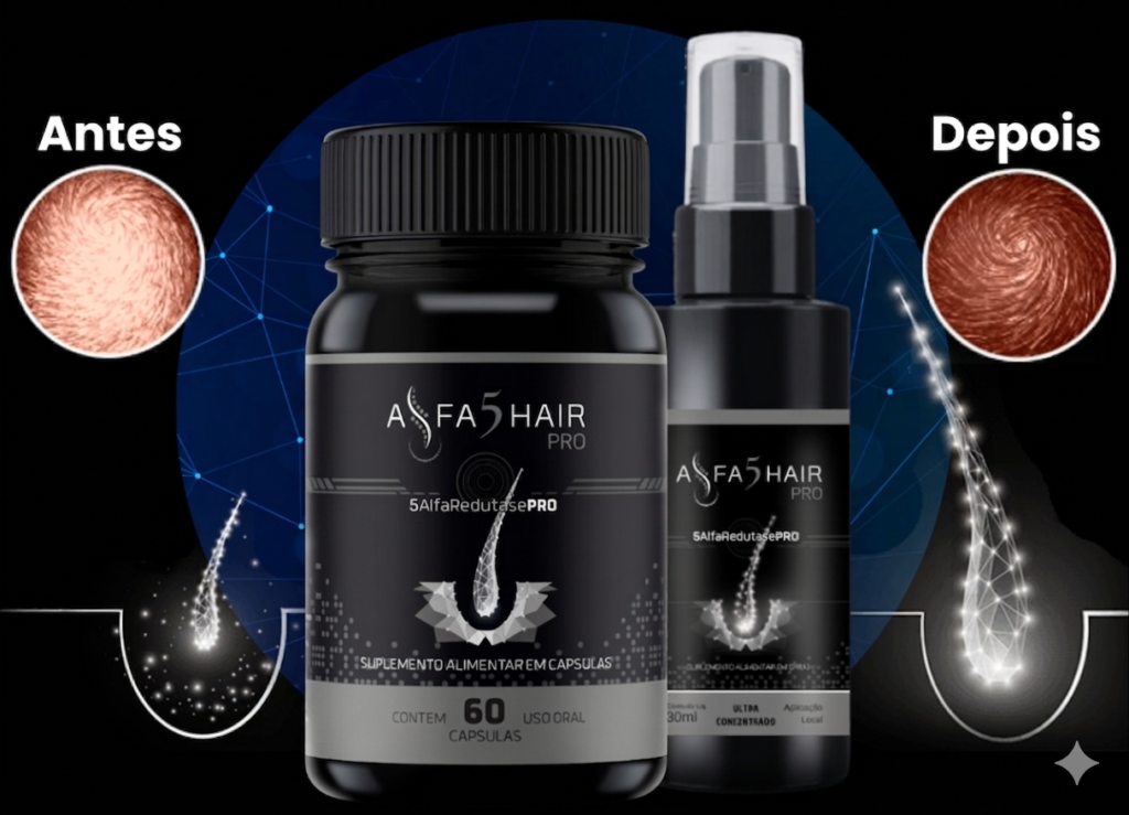 Alfa5Hair PRO age na raiz do problema com a Tecnologia 5 Alfa Redutase PRO, alta absorção Bio‑Absorb e liberação contínua de ativos ao longo do dia.